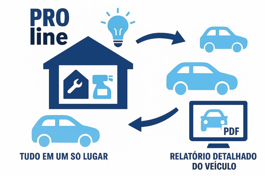 Todo o processo é documentado com fotos e checklists, garantindo um histórico completo e confiável do veículo.